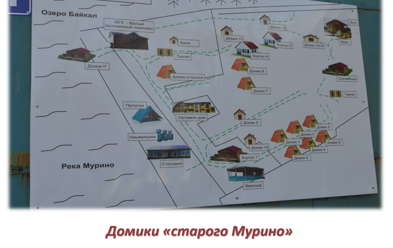 База отдыха «Энергетик» расположена в п. Мурино Слюдянского района в 170 километрах от города Иркутска в прекрасном живописном месте на берегу озера Байкал. К вашим услугам три благоустроенных комплекса (это 31 двухместных и 6 трехместных номера), а так же современная баня и сауна с бассейном. Для вашего оздоровления и поддержания иммунитета предлагаем посещение соляной пещеры.