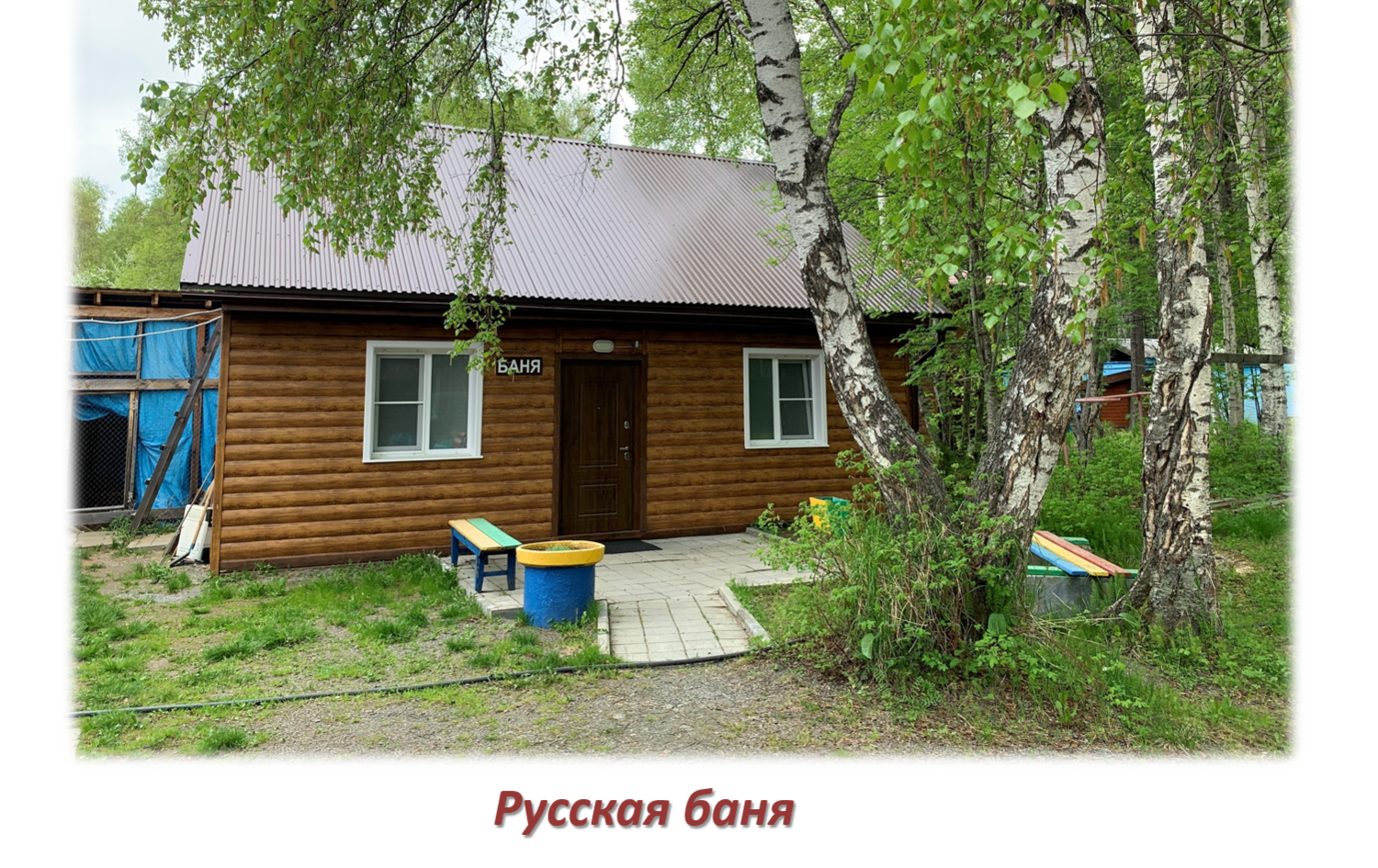 База отдыха является частично неблагоустроенной, но на территории есть умывальники, туалеты, баня и комната гигиены (часы работы по расписанию). В стоимость путевки включено проживание и 3-х разовое питание.